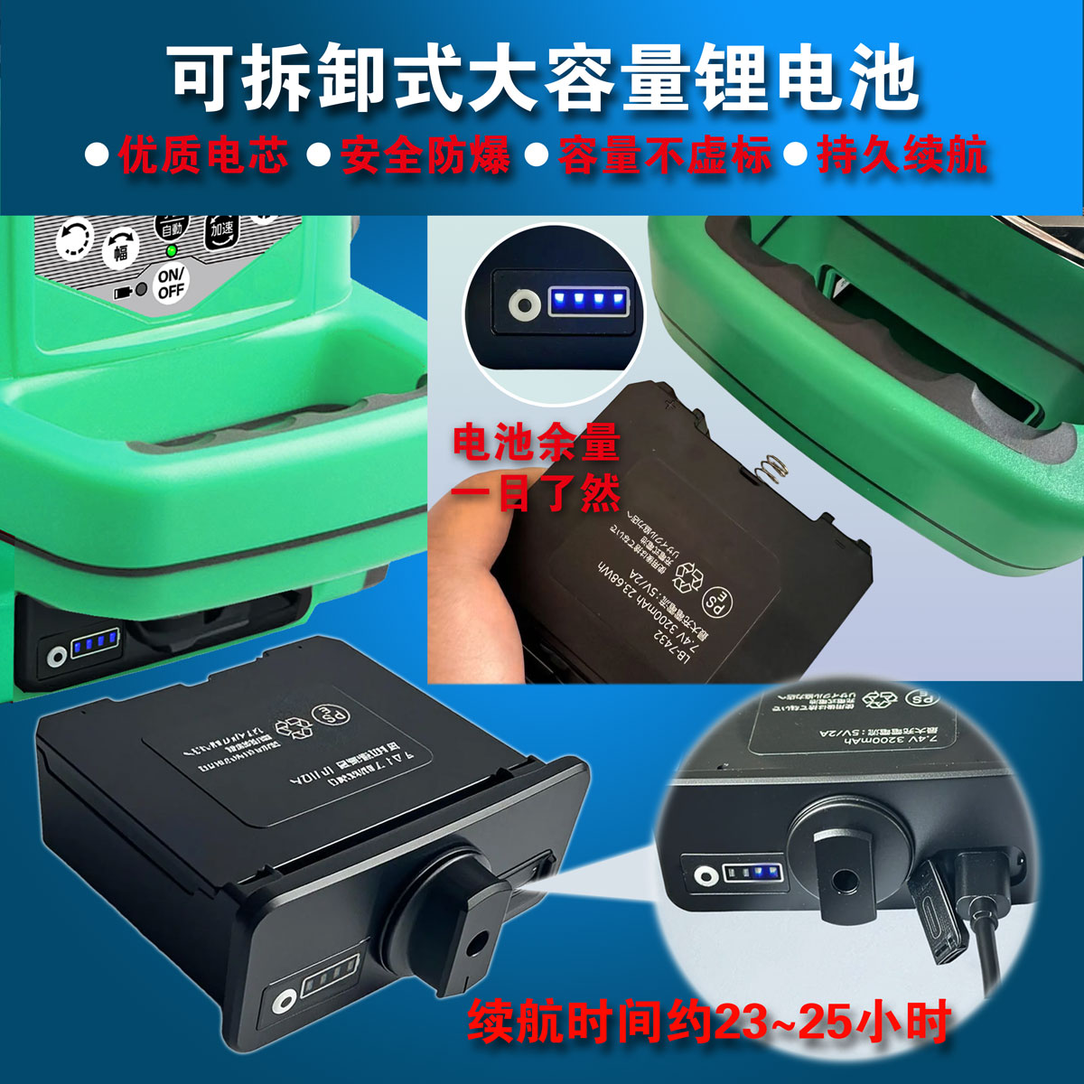 ->可更换式内置锂电池盒:电池盒显示电量,方便随时掌握设备续航。