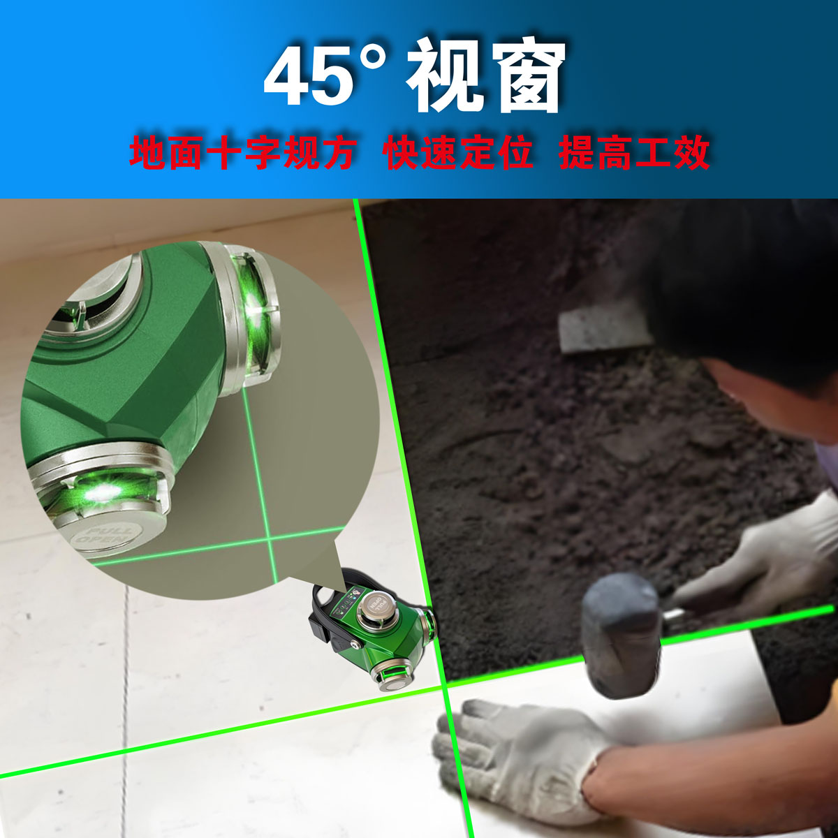 ->两条垂直光线在正前方形成90°夹角,贴地砖、铺地板等操作省时又方便。
