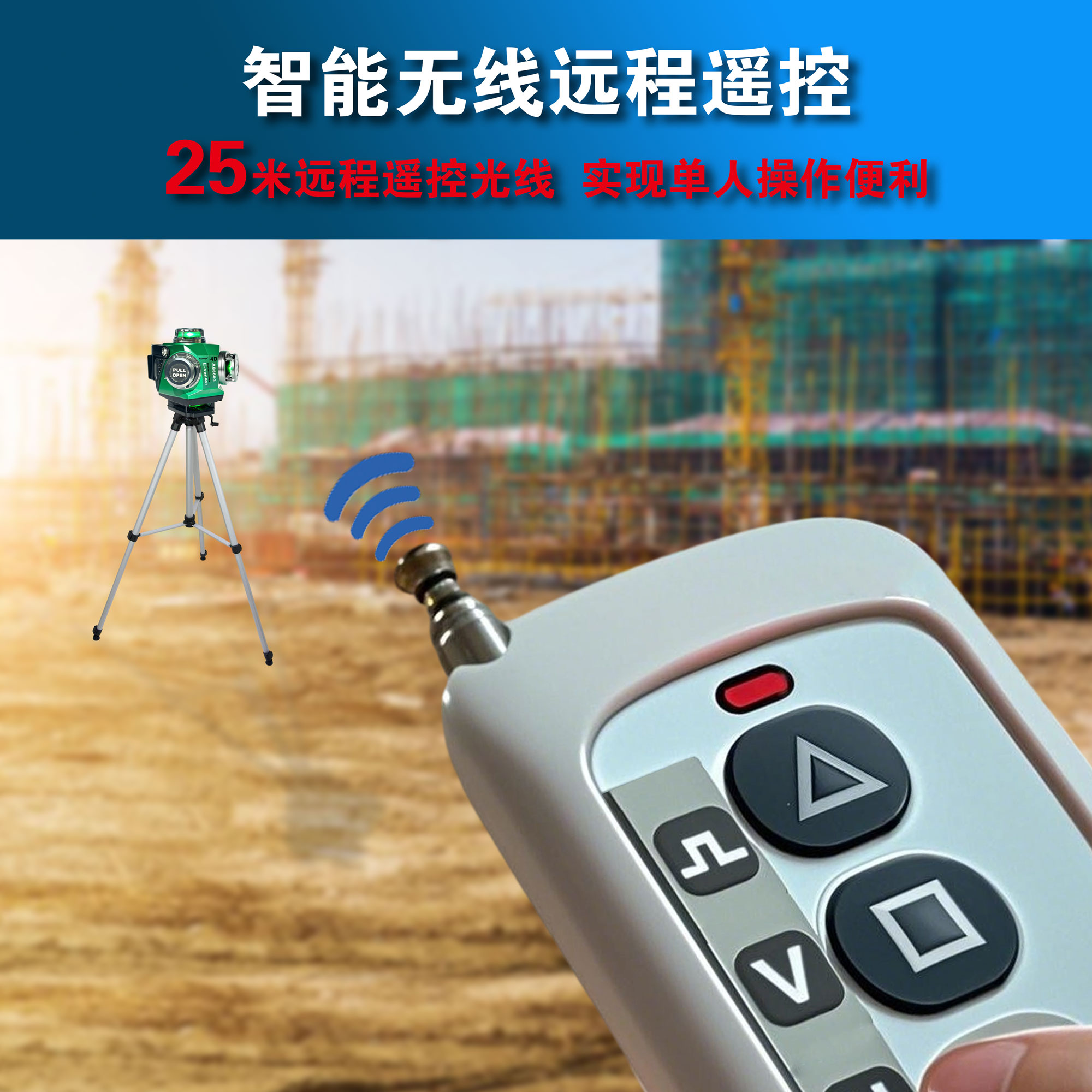 ->可配合接收器使用,使用距离可远达50米,适应大范围作业。
