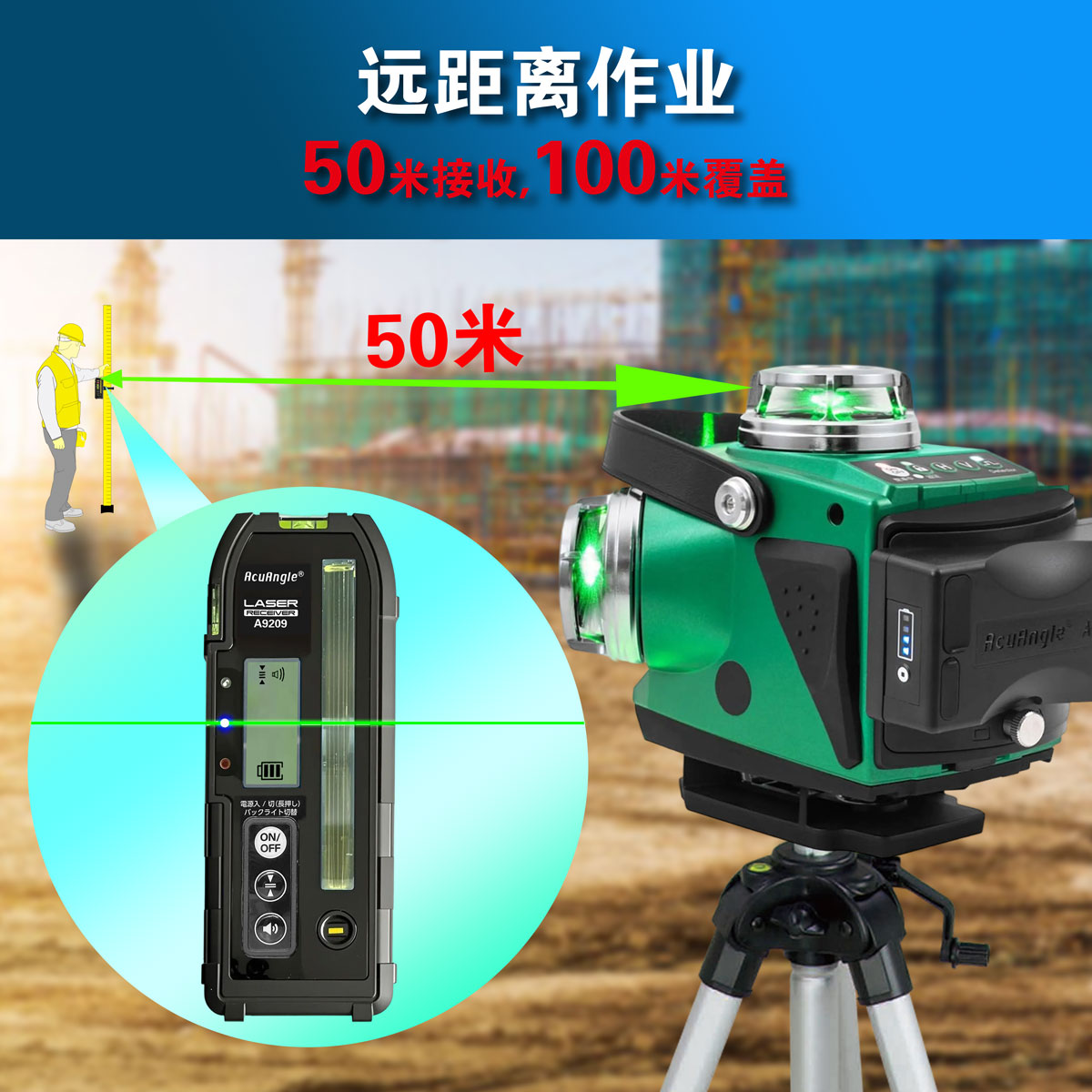 ->使用选购的A9209接收器,可在室外等激光线难以看清的场所使用。