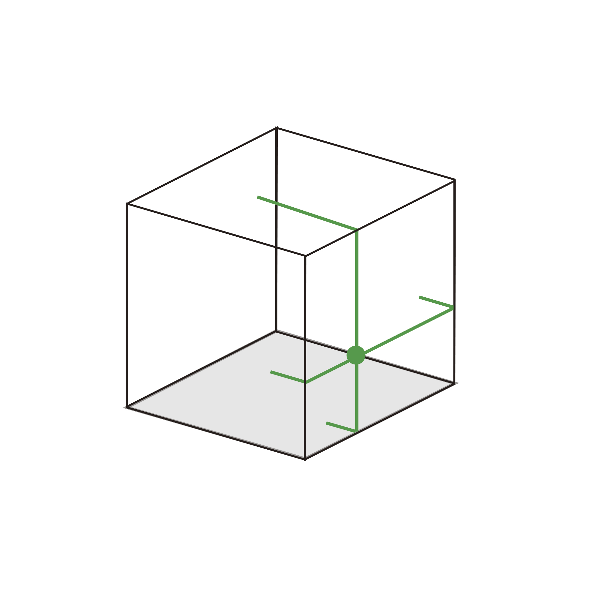 投射1条绿水平线,1条绿垂直线(单十字线)+户外明亮点