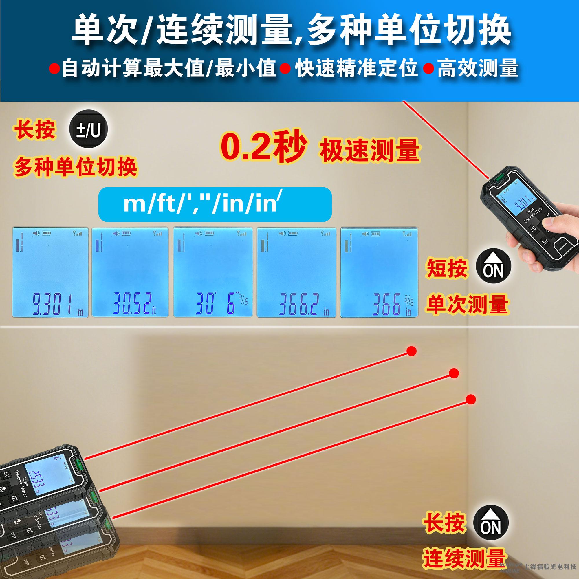 **测量在10m以内时,测量精度为±2mm,超过10m时的测量精度计算公式如下:±2mm±0.05×(D-10)(D为测量距离,单位:m)