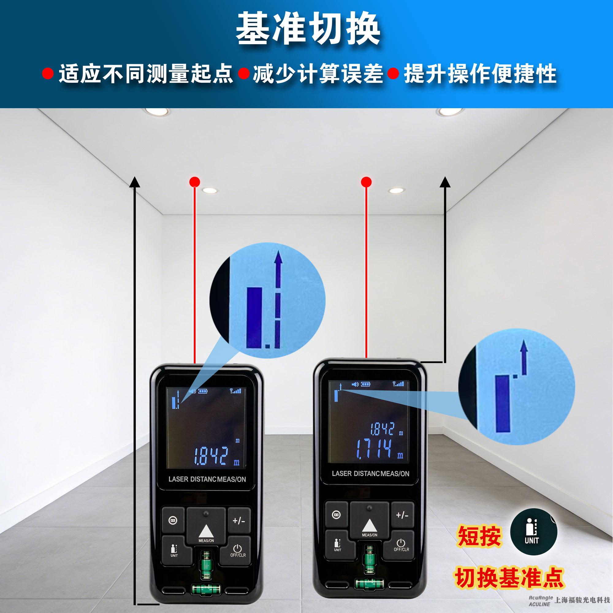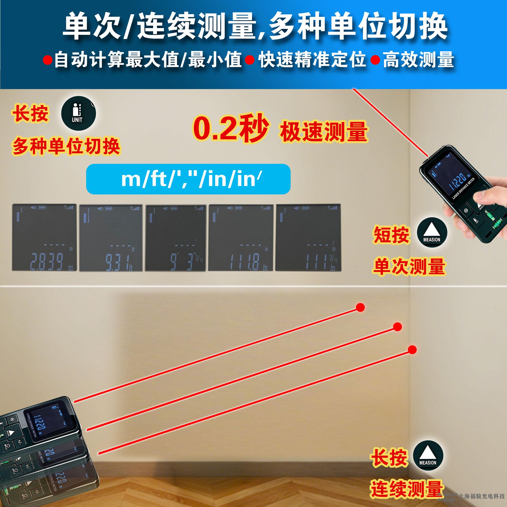 **测量在10m以内时,测量精度为±2mm,超过10m时的测量精度计算公式如下:±2mm±0.05×(D-10)(D为测量距离,单位:m)